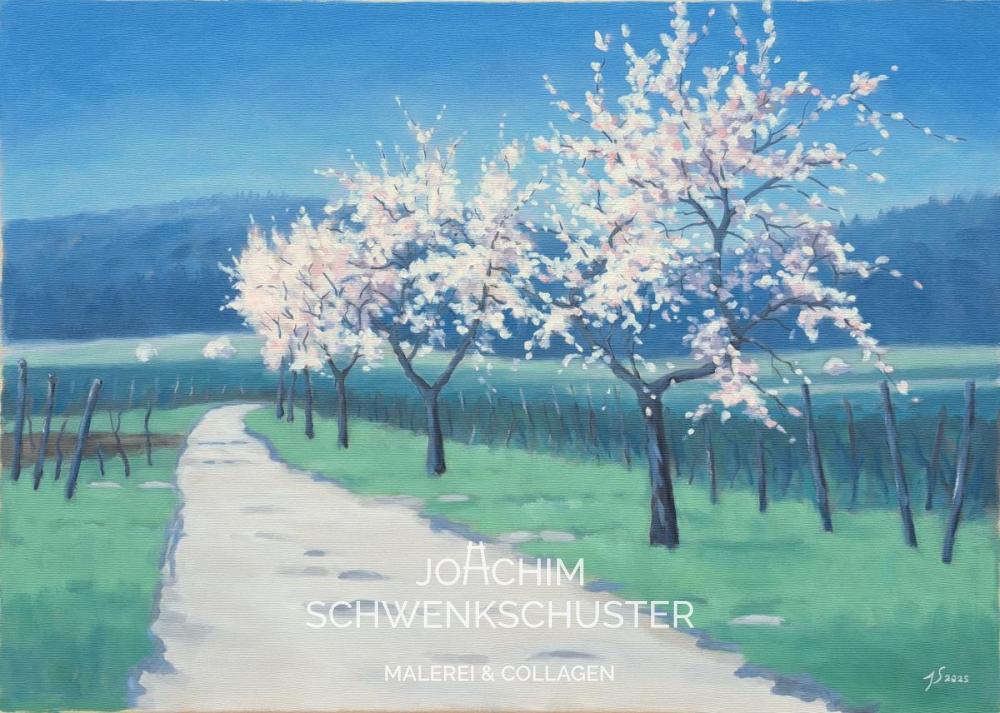 Mandelbäume vor Haardt bei Bobenheim, 2025-3, Leinwand 50x70